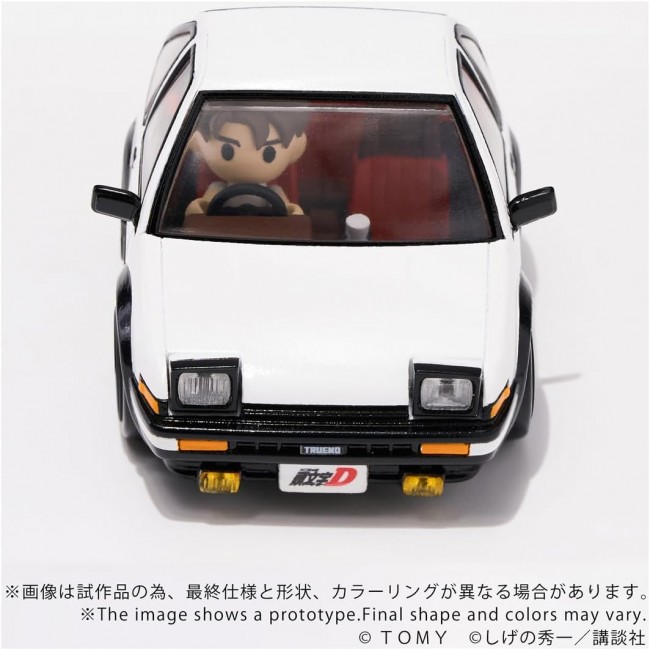 Collection Toy (Passenger Car / Ready-to-Display) Cute and Cool! Deformed Display Model “Q VILLAGE” Series Rooted in “Choro-Q,” this hobby series offers a cute and cool world. A complete display model set featuring a stylized car and mini-figure. From the popular manga Initial D, this set includes the Toyota AE86 TRUENO and Takumi Fujiwara. The body can be removed to place the mini-figure inside the AE86 TRUENO. Enjoy imagining scenes and displaying it. ※Does not feature a pull-back function. Contents AE86 TRUENO Main Body (1), Light Parts (for closed position) (2), Mini-Figure Takumi Fujiwara (1) (C) TOMY (C) Shuichi Shigeno / Kodansha