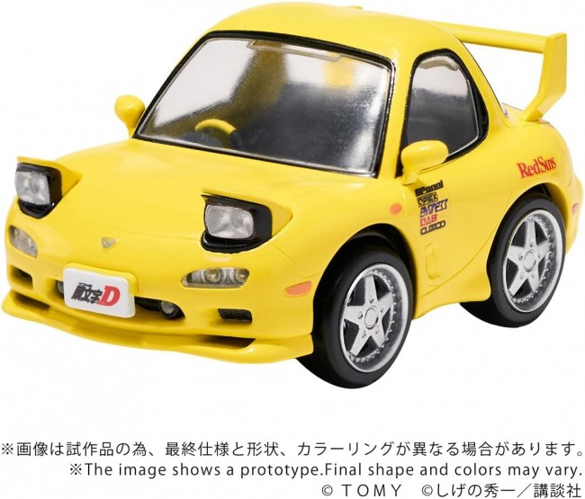 Collection Toy (Passenger Car / Ready-to-Display) Cute and Cool! Deformed Display Model “Q VILLAGE” Series Rooted in “Choro-Q,” this hobby series offers a cute and cool world. A complete display model set featuring a stylized car and mini-figure. From the popular manga Initial D, this set includes the Mazda RX-7 FD3S and Keisuke Takahashi. The body can be removed to place the mini-figure inside the RX-7 FD3S. Enjoy imagining scenes and displaying it. ※No pull-back function. Contents RX-7 FD3S Main Body (1), Light Parts (for closed position) (2), Mini-Figure Keisuke Takahashi (1) (C) TOMY (C) Shuichi Shigeno / Kodansha