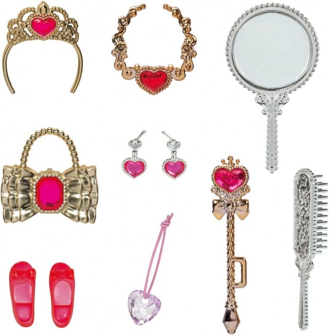 Fluffy long hair with sparkling purple highlights! Nijiiro Jewel Rika-chan is a modern princess wearing an aurora dress adorned with six jewels. Her wavy long hair features sparkling purple highlights! Her three-tiered aurora-material dress sparkles with six jewels. This luxurious set includes a heart jewel tiara, necklace, earrings, wand, ribbon bag, sparkling brush and mirror, hair tie, and shoes?perfect for first-time Rika-chan owners! 【Set Contents】Doll Body (wearing underwear and dress) (1), Shoes (1), Brush (1), Mirror (1), Heart Tiara (1), Heart Necklace (1), Heart Earrings (1), Heart Wand (1), Ribbon Bag (1), Hair Band (1) (C) TOMY