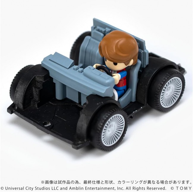 Collectible Toy (Car, Finished Product) Cute and cool! Deformed display model “Q VILLAGE” series. Based on “Choro-Q,” this product offers a cute and cool hobby world. This is a finished display model set that includes a deformed car and mini figure. From the movie “Back to the Future (Part 1),” this set includes the time machine, Doc, and Marty. *The blue-back function is not included. Set contents: Time machine body ×1 Ball ×1 Mini-figure Doc ×1 Mini-figure Marty ×1 (C)Universal City Studios LLC and Amblin Entertainment, Inc. All Rights Reserved. (C) TOMY ※The images are CG renderings using prototype and design data. The final specifications, shape, and coloring may differ.