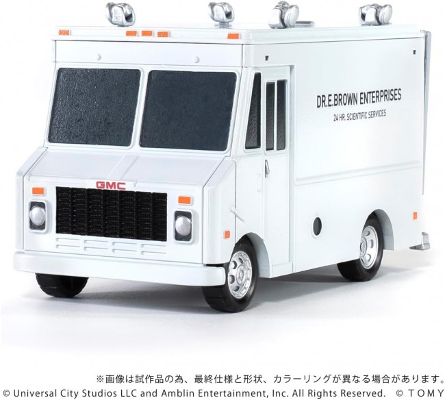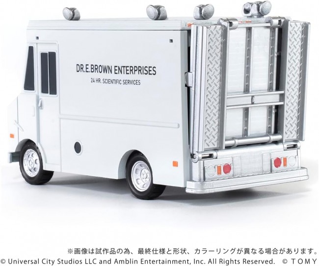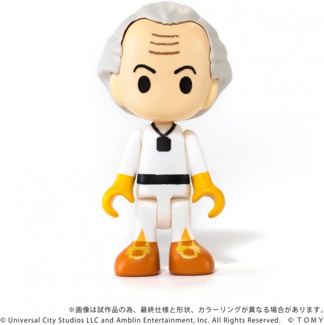 Collectible Toys (Riding Cars, Finished Products) Cute and cool! Deformed display model “Q VILLAGE” series. Based on “Choro-Q,” this series proposes a cute and cool world of hobbies. A finished display model set that includes a deformed car and mini figures. From the movie “Back to the Future (Part 1),” this set includes the time machine, the Value Van, Doc, Marty, and Einstein. The time machine can be mounted on the Value Van. *The blueback function is not included. Time Machine Main Unit ×1 Pole ×1 Value Van ×1 Mini-Figure Doc ×1 Mini-figure Marty ×1 Mini-figure Einstein (with base) ×1 (C)Universal City Studios LLC and Amblin Entertainment, Inc. All Rights Reserved. (C)TOMY ※The images are CG renderings using prototype and design data. The final specifications, shape, and coloring may differ from the images.