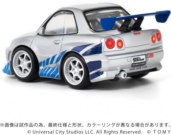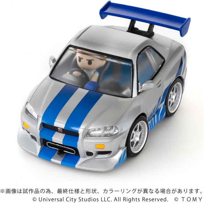 Collectible Toy (Car, Finished Product) Cute and cool! Deformed display model “Q VILLAGE” series. Based on “Choro-Q,” this hobby product offers a cute and cool worldview. This is a finished display model set that includes a deformed car and mini figure. From the movie “The Fast and the Furious,” this set includes the Nissan Skyline GT-R (R34) and Brian. *Does not have a pull-back function. Skyline GT-R (R34) main unit ×1 Mini-figure Brian ×1 (C) Universal City Studios LLC. All Rights Reserved. (C) TOMY ※The image is a CG rendering using prototype and design data. The final specifications, shape, and coloring may differ from the image.