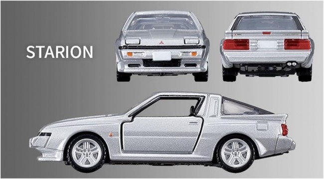 Mitsubishi's popular sports cars arrive in a 3-car set! (Scale Action) ・MITSUBISHI STARION (1/62 scale, left/right doors open, retractable lights move) ・MITSUBISHI GTO TWIN TURBO (1/63 scale, suspension) ・MITSUBISHI LANCER EVOLUTION FINAL EDITION (1/61 scale, suspension) 【Set Contents】MITSUBISHI STARION (1), MITSUBISHI GTO TWIN TURBO (1), MITSUBISHI LANCER EVOLUTION FINAL EDITION (1) (C) TOMY