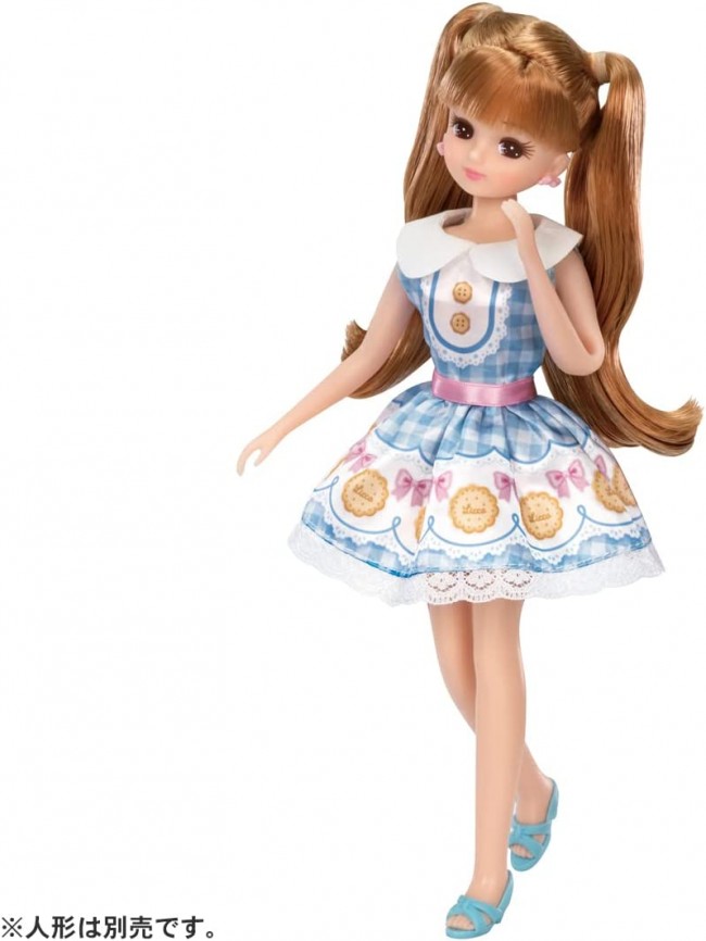 Lovely dress with gingham check and biscuit pattern. Lovely dress with blue gingham check and biscuit pattern. It comes with blue sandals. Set includes】dress(1),couture(1),※Doll is sold separately. (c) TOMY