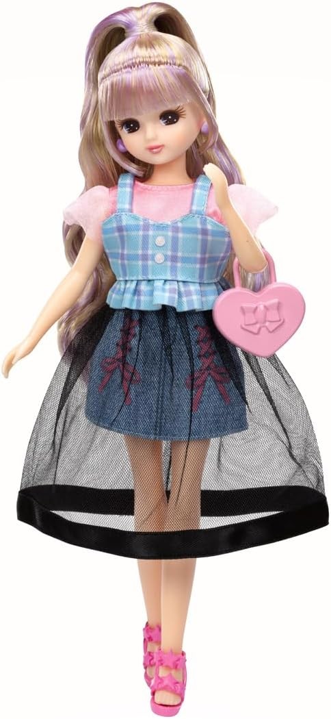 This Ricca-chan gift set includes 7 outfits for over a week of styling fun. The set features Ricca-chan in a pink top and denim skirt combo, plus interchangeable pieces like a bustier and jacket, a purple short top with a mermaid skirt, and a black tulle skirt perfect for layered looks. Also included are socks, pumps, star sandals, and two types of bags. From casual to girly looks, this gift set lets you enjoy endless fashion fun. 【Set Contents】Doll (wearing dress, socks, earrings, underwear) (1), Jacket (1), Short Top (1), Bustier (1), Mermaid Skirt (1), Tulle Skirt (1), Pumps (1), Star Sandals (1), Heart Bag (1), Handbag (1) (C) TOMY