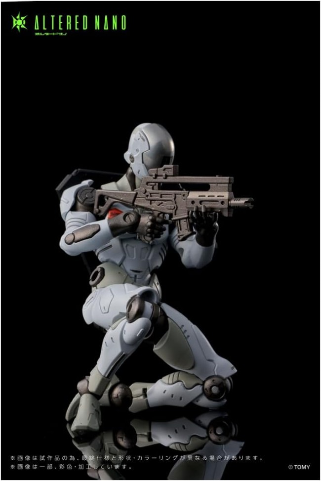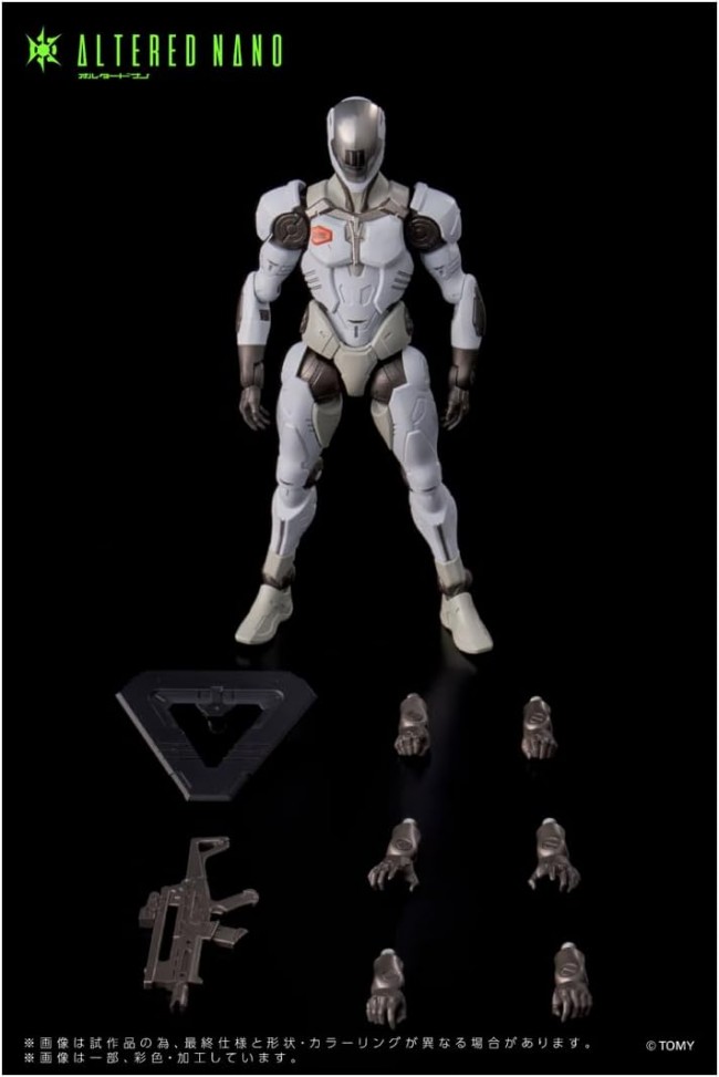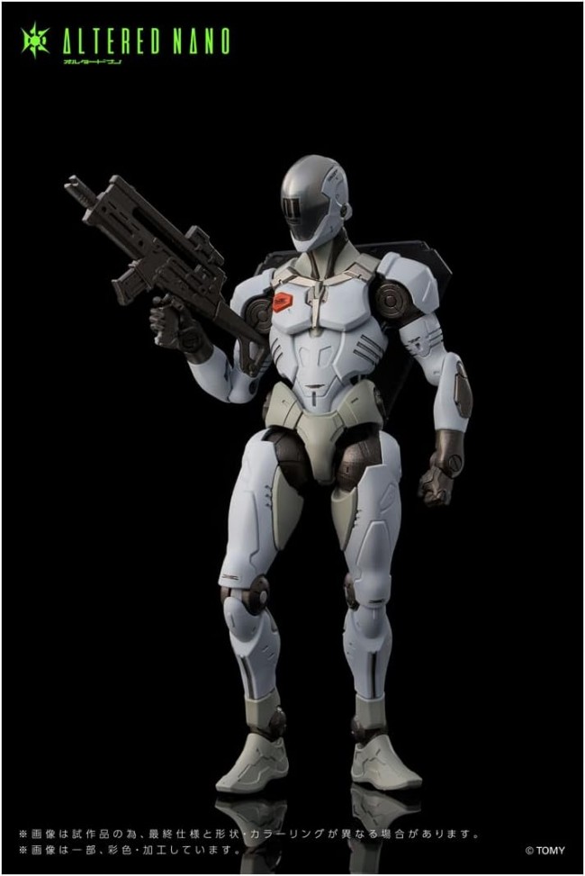 Action Figures (Animation/Science Fiction Characters) AN-01 Alt FRIGATE Finished action figure series “Altered Nano”. Designed by Yoji Shinkawa and mechanically designed by Shinji Aramaki, the figure is condensed to a height of approximately 10 cm, and the mechanism works in tandem with the figure to create a new playful experience. Yoji Shinkawa designed this 10cm-tall finished action figure. The joints of the elbows and ankles, as well as other specially designed joints, allow for a wide range of movement. The figure can also be mounted on the “AN-02 AA-CAVALL 1024” (sold separately). Includes medallion on her back, PDW firearms, and three replaceable wrist parts. Contents Main body (1), replacement wrist parts (1), armored parts (1), weapon parts (1), instruction manual (1) (C) TOMY