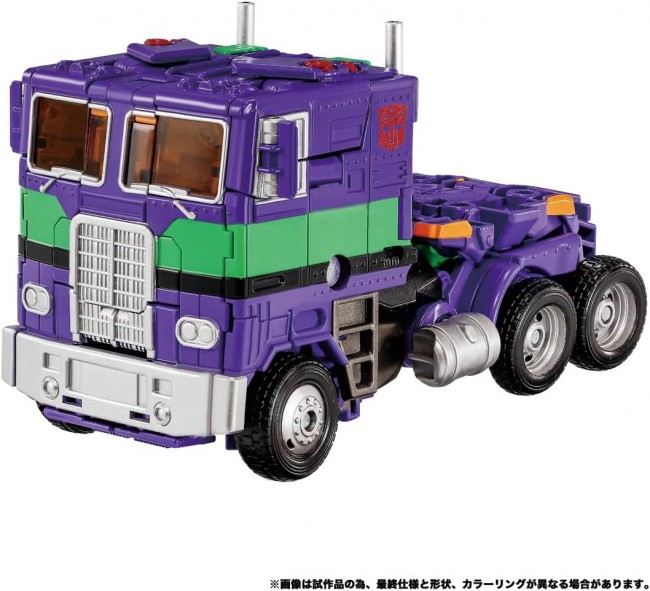 Action Figure (Anime/Sci-Fi Character) A dream collaboration between Evangelion and Transformers! Optimus Prime, having scanned Evangelion Unit-01, emerges as “Evangelion Prime Unit-01.” Optimus Prime dons the distinctive design and colors of Evangelion Unit-01 to become “Evangelion Prime Unit-01”. Fully transforms from robot mode to truck-type vehicle mode. Robot mode features fully posable joints for dynamic posing. Accessories inspired by Evangelion Unit-01's weapons are included. The included accessories can be attached to the back of the main body via the back mount unit. Opening the chest panel exposes the internal core. The core section can be removed and attached to the included Core Matrix. Posing with the Core Matrix raised is also possible. The head can switch between a masked-on state and a masked-off state. In the masked-off state, the mouth can open and close. Product Dimensions (mm) W 120.00 H 250.00 D 80.00 (Robot Mode) Set Contents Evangelion Prime Unit-01 Main Body (1), Ion Gatling Blaster (1), Progressive Energy Knife (2), Cassius' Axe (1), Core Matrix (1), Back Mount Unit (1), Holder Parts (1), Instruction Manual (1), (C) TOMY (C) khara