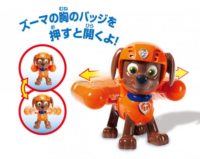 The figure of "Zuma" who is good at swimming comes up! When the button on the chest is pushed, the diving screw jumps out from the puff pack on the back!