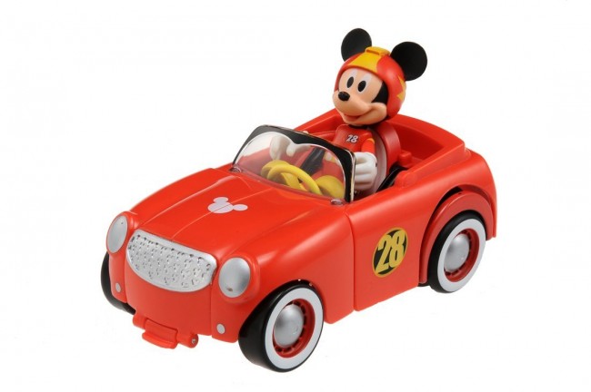 It is a set of racing car and Mickey figures appearing on TV animation "Mickey Mouse and Road Racers".