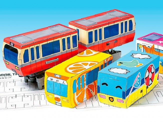 Total length = approx. 203 mm [Drives back and forth along the rails! ] This monorail craft set is used as an urban transportation system. The monorail runs along a single rail and automatically makes a round trip. The monorail can run either on the rails or suspended from the rails. The train consists of two cars: a lead car with a light-smoke gearbox and a rear car with a battery box. All necessary parts are included in the set and can be easily assembled by fitting and screwing. [Basic Specifications] Includes 2 straight rails 210mm long and 2 sheets of white paper for the body. Uses 1 AAA battery (sold separately). [Download Service] You can download the paper craft and PDF data of the monorail car body. Please print out the data in full size (100%) on A4 size paper, and assemble it on cardboard or other thick paper. For assembly instructions, please refer to the product assembly diagram. The product can be used in combination with the rail set and universal plate for monorail construction (sold separately). ⇒Rail set (70255) ⇒Universal plate (70157) The body is made of white paper. It can be easily assembled and finished by painting it freely with colored pencils. When the switching lever hits the stopper attached to the rail, the gear position changes and the tires rotate in the opposite direction. The train automatically moves back and forth. To make a suspended monorail, use a universal plate (sold separately) to make a platform. ⇒Universal plate (70157) Information is current as of April 20, 2023. Product names, prices, release dates, specifications, etc. are subject to change without notice. (From Tamiya website)