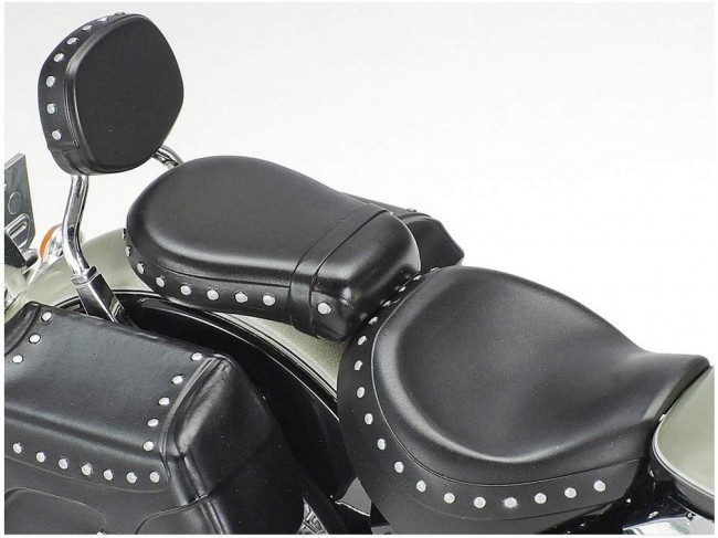 ★ Seat with studs, tandem pillion pads, backrest, side bags, and large windshield parts.