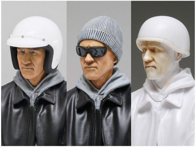 It can be assembled by selecting a pose wearing two types of helmets and a pose wearing a knitted cap while taking off the helmet.