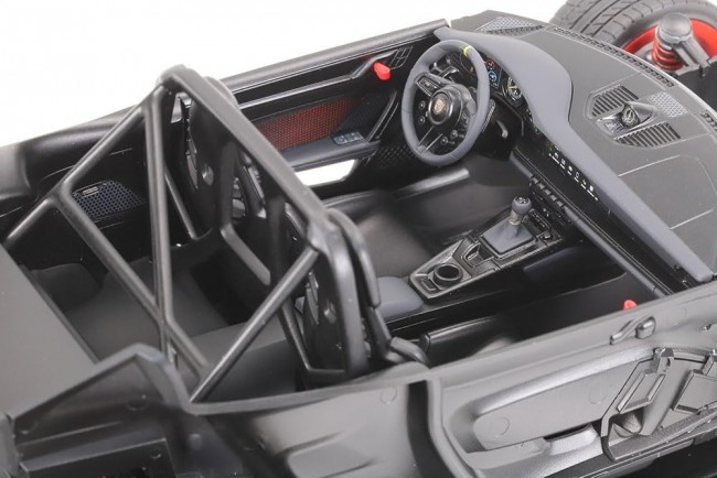 Length=190 mm (photo shows assembled and painted kit) The Porsche 911 series boasts a long history and continues to evolve. The 911 GT3 RS was released in 2022 as a high-performance road car with an emphasis on circuit driving. It has vents on the hood and fenders, and rectification fins on the front and rear wheel arches and roof. In addition, the large rear wing employs a variable “DRS (drag reduction system)” to thoroughly pursue aerodynamics. Naturally, the vehicle's weight was also reduced through the extensive use of CFRP in various body parts. The engine mounted in the rear is a 4-liter horizontally opposed 6-cylinder. The engine, mounted in the rear, is a 4-liter horizontally opposed 6-cylinder engine, which delivers 525 horsepower by incorporating a number of racing technologies. Overall length, width, and height are 190 mm, 85 mm, and 55 mm, respectively. Air vents are opened in each part of the body and rectification fins are attached to reproduce the powerful appearance of the car. Carbon fiber hood and roof, dashboard, mesh seat and door linings are represented by decals. Brake calipers and discs are separately reproduced. Metal inlet marks are provided for mirror surfaces and high mount stop lamps. Mask stickers for painting are included. The complex body shape with greatly improved aerodynamic performance is faithfully modeled in the traditional design of the Porsche 911. Large movable rear wing generates powerful downforce. The two-piece swan neck type wing is precisely reproduced. All parts that need to be painted on the body are separate parts. Body parts do not require troublesome masking work. Rectification fins attached to the front and rear wheel arches are reproduced in the same shape as the real car. The interior of the car is reproduced as a left-hand drive European model. The door linings and bucket seat surface patterns are reproduced with slide marks for a precise finish. The underside of the body where the diffuser is placed is also realistically reproduced. Slide marks: Includes all four types of body side stickers provided with the actual car. You can enjoy painting with various body colors. Information is current as of September 13, 2024. Product name, price, release date, and specifications are subject to change without notice. (From Tamiya website)