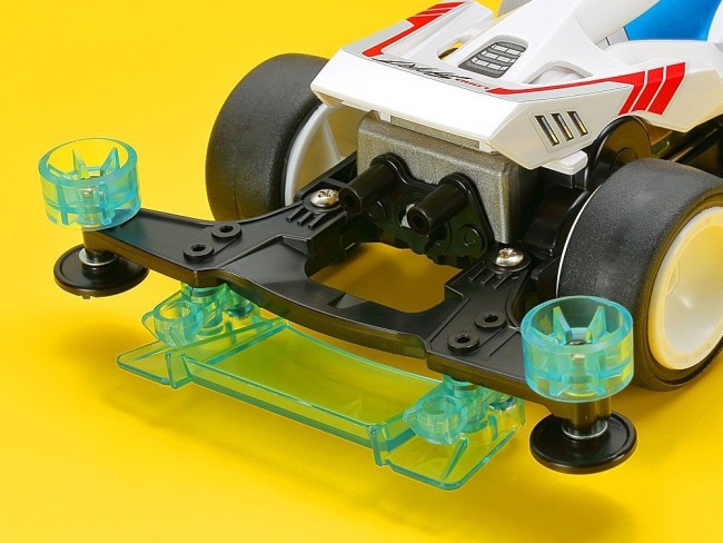 [Size] When completed: Overall length 165 mm, overall width 98 mm, overall height 44 mm [Batteries used] 2 AA batteries (sold separately) [Other] With motor The legend of "Laser Mini 4WD" begins The Road Spirit is a machine driven by Mota Kudo, the main character of the manga "MINI 4 KING". The white-collar body consists of two parts, a front part that is narrowed down toward the rear and a roof. The sharp styling that is held low gives a sense of speed. Even more noteworthy are the road spirit parts, which are important items in the story. The front stabilizer protruding like a corner, the rear brake attached to the underside of the machine, and the rear height roller, which is characterized by its thick shape, add stability at high speeds. The powerful silhouette and the beautiful texture of clear blue green are also attractive. And the chassis adopts VZ which is lightweight and compact and suitable for actual battle. Dish type wheels equipped with large diameter slick tires are easy to apply force when inserting the shaft. The red graphic that shines in white, the logo of the machine name, etc. are expressed with metallic stickers. ● Can be assembled by fitting and screwing without using adhesive