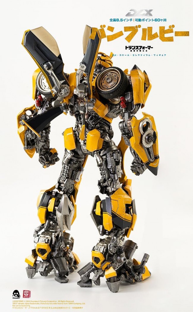 Action Figure (Animation/Science Fiction Character) Bumblebee from the “Transformers: The Last Knight King” movie version is now available from the DLX series! Bumblebee is the first figure in threezero's DLX series based on the “Transformers: The Last Knight King” movie! The DLX series has taken the complex design of the Transformers and made it into a moderately sized figure with a high cost-performance ratio. The metal frame provides not only a wide range of motion, but also a comfortable weight and sturdiness to the figure. The figure's metal frame provides not only a wide range of motion, but also a comfortable weight and sturdiness, and combined with threezero's intricate paint work, it is a realistic reproduction of the figure as it appeared in the original film. Transformers: The Last Knight DLX Bumblebee stands approximately 22 cm tall and has approximately 60 points of articulation throughout its body. The figure has a die-cast metal frame, and its eyes are equipped with LED light-emitting functions. As weapons, an interchangeable cannon for the right arm and a sabertronian hammer are included. A battle mask, detachable wings, 4 pairs of wrist parts (1 pair of fists, 1 pair of hands in relaxed pose, 1 pair of hands in action pose, and 1 pair of hands to hold the Sabertronian Hammer), and a DLX action stand are also included to create a variety of scenes. Accessories: Interchangeable cannon for right arm, Sabertronian Hammer, battle mask, 1 pair of detachable wings, 4 pairs of interchangeable wrist parts (1 pair of fists, 1 pair of hands in relaxed pose, 1 pair of hands in action pose, 1 pair of hands to hold Sabertronian Hammer), action stand with base Product Specifications Title Transformers: The Last Knight Specifications POM&ABS&PC&PVC&zinc alloy painted posable figure Not to scale Height: approx. 22cm Equipped with LED light-emitting eyes Batteries sold separately (AG13 batteries x 2 required) Sculptor threezero Resale Sales: August 2022] [Resale: July 2025 Manufacturer threezero Sold By Good Smile Company (C) 2020 TOMY.(C) 2016 Paramount Pictures Corporation. All Rights Reserved. TM & (R) denote Japan Trademarks. Transformers” and ‘TRANSFORMERS’ are registered trademarks of TOMY Company, Ltd. Precautions About the product The photos shown are of a sample product. Some specifications may differ from the actual product. Due to the manual coloring process, there may be slight differences in the paint job of each product. Please understand this beforehand. Due to the nature of the paint, the paint may not be completely dry when the package is opened. If the paint is not dry, place the product in a shady, well-ventilated room for 2~3 days to make sure the painted surface is dry before touching it. If the product is used while it is not dry, it may cause color migration or fingerprint marks. (From Good Smile Company website)