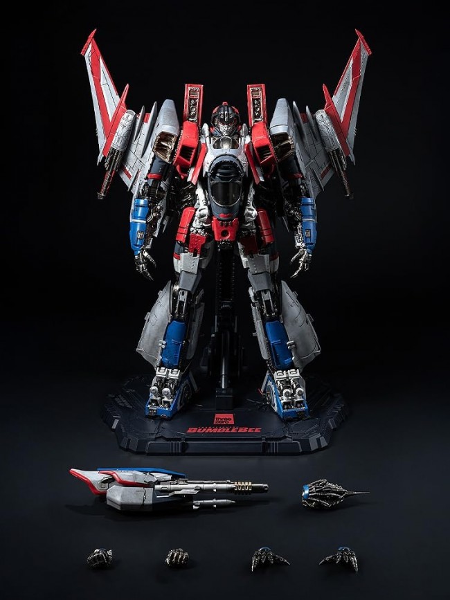 Action Figure (Anime/Sci-Fi Character) Starscream from the movie ‘Bumblebee’ arrives in the DLX series! Starscream from the movie ‘Bumblebee’ arrives in threezero's DLX series! The “DLX Starscream” is a fully articulated figure (non-transforming) standing approximately 27cm tall. It realistically recreates the robot mode seen in the original movie through highly detailed sculpting and intricate paintwork, including weathering effects. Newly sculpted parts include the head, shoulder intakes, wings, and legs. An internal die-cast metal articulated frame provides durability and ease of play. Features approximately 51 points of articulation throughout the body. Additionally, the knee joints feature newly sculpted die-cast parts. The LED light function in the eyes can be turned on and off using the included magnet. Specifications ● Officially licensed by Takara Tomy Co., Ltd. and Hasbro, Inc. ● Non-scale, approximately 27cm tall ● Fully articulated figure with approximately 51 points of articulation (non-transforming) ●Precise paint application including weathering effects ●Newly sculpted parts including head, shoulder intakes, wings, and legs ●Features a die-cast metal frame for durability and playability. Knee joints are newly created with die-cast metal parts. ●Equipped with LED light-up function in the eyes. Use the included magnet to turn the light on and off. Accessories: Interchangeable right forearm parts ×2 types (standard right forearm part, Narley's right forearm part), interchangeable wrist parts ×4 types (1 pair of fists, 1 pair of relaxed hands, 1 pair of wide-open hands, left hand holding Electron Saw Blade), DLX Action Stand ×1 Product Specifications Title The Movie 'Bumblebee' Specifications ABS & PVC & POM & Zinc Alloy & Magnet Painted Articulated Figure Non-Scale Total Height: Approx. 27cm LED Illumination Function in Both Eyes (Can be turned on/off using the included magnet) Batteries sold separately (Requires 2 AG3 batteries) Prototype Production threezero Manufacturer threezero Distributor Good Smile Company (C)2025 TOMY. (C) 2018 Paramount Pictures Corporation. All Rights Reserved. TM & (R) denote Japan Trademarks. Manufactured under license from TOMY Company, Ltd. For sale in Japan only. “トランスフォーマー” and “TRANSFORMERS” are registered trademarks of TOMY Company, Ltd. (From the Good Smile Company website)