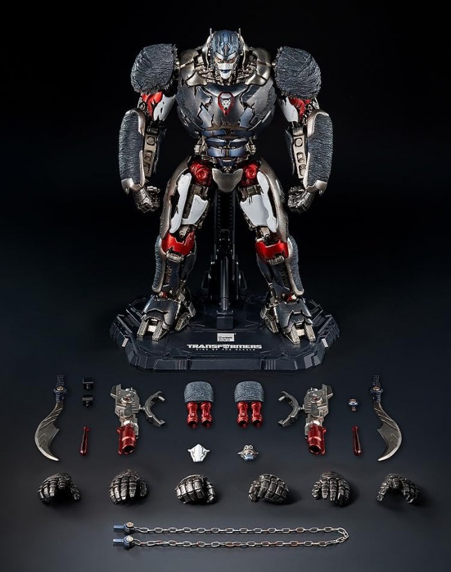 Action Figure (Anime/Sci-Fi Character) A color variation of Optimus Primal from the movie Transformers: Beast Awakening is now available! A color variation paying homage to the anime Beast Wars: Super Lifeform Transformers is now available for the DLX Optimus Primal action figure based on the movie Transformers: Beast Awakening! The “DLX Optimus Primal (Beast Wars Universe Edition)” is a fully articulated figure (non-transforming) standing approximately 28.5cm tall. Its distinctive red, blue, and black paint scheme pays homage to the colors from the anime ‘Beast Wars: Transformers: The Super Lifeform’, featuring the Maximals logo on the chest. This color variation also introduces new weaponry: two pairs of Mega Blasters can be mounted on the back, and each forearm can be equipped with a Wrist Cannon. The Mega Blasters feature adjustable angles, and clear plastic missiles can be spring-loaded and fired from their tips. The Mega Blasters attach magnetically to the forearms. The “DLX Optimus Primal (Beast Wars Universe Edition)” utilizes a die-cast metal frame to achieve approximately 74 points of articulation?the most in the series. The actuator cylinders on the torso, arms, and legs are fully functional. It features precise painting, including weathering effects. The distinctive fur on the shoulder armor is recreated using soft PVC. Three interchangeable head mask parts are included (closed-mouth battle mask, open-mouth battle mask, and face without battle mask). The eyes feature LED illumination. Two signature Cyberblades are included as weapons. The Cyberblades can combine into one blade via a connector or connect using the included metal chain. Four pairs of interchangeable wrist parts and one DLX Action Stand are included, allowing for the recreation of various scenes from the show. The DLX series captures the complex designs of Transformers in figures with a manageable size and high cost performance. The metal frame provides not only a wide range of articulation but also gives the figure a satisfying weight and sturdiness. Accessories: Interchangeable mask parts × 3 types (Closed-mouth battle mask × 1, Open-mouth battle mask × 1, Face without battle mask × 1), Cyberblades × 2, Cyberblade connector × 1, Cyberblade connector with metal chain × 1, Connectors for attaching Cyberblades to the back × 2, Removable Mega Blaster ×1 pair for back, Clear missile parts for Mega Blaster ×1 pair (spring-loaded launch from Mega Blaster tip), Magnetic wrist cannons ×1 pair for both forearms, Interchangeable wrist parts ×4 pairs (Fists ×1 pair, Open hands ×1 pair, Action pose hands ×1 pair, Weapon-holding hands ×1 pair), DLX Action Stand ×1 Product Specifications Title Transformers: Beast Awakening Specifications Pre-painted articulated figure made of ABS, PVC, POM, and zinc alloy (uses magnets) Non-scale Total height: approx. 285mm Features LED illumination in both eyes Batteries sold separately (requires 2 AG13 batteries) Prototype Production threezero Manufacturer threezero Distributor Good Smile Company (C)2025 TOMY. (C) 2023 Paramount Pictures Corporation. All Rights Reserved. TM & (R) denote Japan Trademarks. Manufactured under license from TOMY Company, Ltd. “トランスフォーマー” and “TRANSFORMERS” are registered trademarks of TOMY Company, Ltd. Important Notes About the Product The photos shown are of sample products. Actual product specifications may differ in part. Product painting involves manual coloring processes, so slight variations may occur between individual items. Please be aware of this beforehand. Due to the nature of the paint, the coating may not be fully dry upon opening the package. If the paint is not dry, please place the item in a well-ventilated, shaded indoor area for 2-3 days to ensure the painted surface is completely dry before handling. Using the item while the paint is still wet may cause color transfer or leave fingerprints, so please be careful. (From the Good Smile Company website)