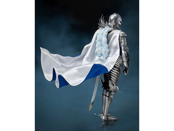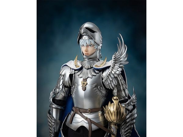 Action Figure (Completed / Movable) From the manga "Berserk" comes a 1/6th scale articulated figure of Griffith in his new Band of the Hawk costume! From the popular manga "Berserk" comes a figure of Griffith (new Band of the Hawk)! This 1/6th scale (approx. 30cm in height) posable figure has more than 40 points of articulation thanks to the use of a special body. The figure is made of ABS, PVC, and POM, and the joints of the armor are made of cloth. The armor is painted with a metallic finish to accentuate the high detail of the figure. Griffith (New Order of the Hawk)" is also equipped with various gimmicks to enhance his playability. Two head parts are included, one with helmet and one without (both heads use one common face part). The visor part of the helmet is movable and can be flipped up to expose Griffith's face. The long hair is made of soft PVC and does not interfere with movement. The cape is detachable and has wires at the edges for expressiveness. A sword is also included and can be stored in the scabbard. Four other pairs of wrist parts for different poses are also included. Painted ABS&PVC&POM & metal posable figure with cloth costume 1/6 scale Height: approx. 300mm Accessories: Armor x 1 set, removable cloth cape (with wires at the edges) x 1, 2 interchangeable head parts (one head with helmet and one without helmet. Both heads use one common face part), sword and its sheath x 1, 4 pairs of interchangeable wrist parts (1 pair of open hands, 1 pair of hands in pointing pose, 2 pairs of hands in different poses for holding the sword) Sculptor threezero The photos shown may differ slightly from the actual product. Due to the manual coloring process of the product, there may be slight differences in the painting of each product. Please understand this in advance. The pedestal is a prototype. It may differ from the actual product. Due to the nature of the paint, the paint may not be completely dry when the package is opened. If the paint is not dry, please place the product in a shady, well-ventilated room for 2~3 days to make sure the painted surface is dry before touching it. If the product is used while it is not dry, it may cause color migration or fingerprint marks. (C) Kentaro Miura, Studio Ganga/Hakusensha (From Good Smile Company website)