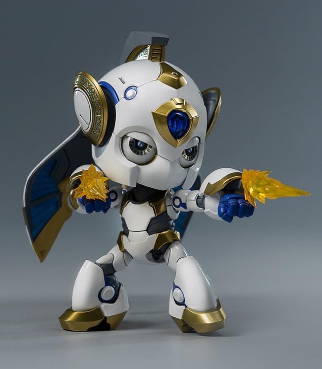 Action Figure (Animation/Science Fiction Character) Mini Robot "Dango" from the Hong Kong-based science fiction novel "Kokone Link" is now available as an articulated figure! From the illustrated science fiction novel "Kokone Link", the mysterious robot "Dango" joins threezero's MDLX line! The official website of "Kokone Link": https://www.kokone.link/en/ Dango is a birthday present given to the story's protagonist, Kokone Watabashi, by her father, Yota. Dango's origin and identity are completely unknown. Dango's small body, only 9 cm tall, holds tremendous power and protects Kokone from the monsters that come to attack her. ■Wide range of motion and comfortable touch MDLX DANGO has a die-cast zinc alloy and engineering plastic skeleton with a total of 49 movable joints throughout its body. The wide range of motion and firm retention of the joints are combined with a satisfying feel that makes playing with DANGO worthwhile. ■Mode change and eyelid opening/closing function As in the original work, the figure can change modes between normal mode and battle mode. The head, neck and thighs can be extended by interlocking movement. After the mode change, not only does the figure's height and appearance change, but her eyelids automatically move up and down, allowing the figure to assume different expressions. Arm armor can be opened and closed, and the arm cannon can be extended by interlocking movement. ■Eyeballs with rotatable and light-emitting functions. Eyeballs are equipped with LED and emit blue light. In addition, they can be rotated individually, allowing you to create various expressions according to the scenes and modes in the story. In addition to the eyes, the clear parts of the forehead are also equipped with LED light-emitting functions. Craftsmanship in painting and over 100 parts With top-quality craftsmanship in the paint job and over 100 precision-molded parts, this 9cm-tall high-end movable figure will set a new quality standard in the toy industry. ■A wealth of accessories to enhance playability A pair of clear blue beam sword effect parts and a pair of clear yellow beam cannon effect parts are included. These can be attached to the cannon stored inside the forearm armor, allowing for both long-range and melee attack poses, just like in the original play. In addition, a pair of interchangeable wrist parts are included: a pair of fists, a pair of open hands, a pair of clasped hands, a V-sign right hand, and a thumbs-up right hand, allowing Dango's cheerful personality to be expressed. A key chain can be attached to the hole in the back of MDLX Dango's head, allowing the figure to mimic the mascot strap used in the film. Painted ABS&PVC&POM & zinc alloy posable figure 1/1 scale Height: approx. 90mm Both eyes and forehead are equipped with LED light-emitting function Batteries sold separately (AG1 batteries x 2 required) Accessories: Various interchangeable wrists (1 pair of fists, 1 pair of open hands, 1 pair of clasped hands, right hand with V-sign, right hand with thumbs up), 2 pairs of effect parts (1 pair of effect parts for the beam sword made of blue clear parts, 1 pair of effect parts for the beam cannon made of yellow clear parts) (C) 2023 Quay Entertainment International. (From Good Smile Company website)