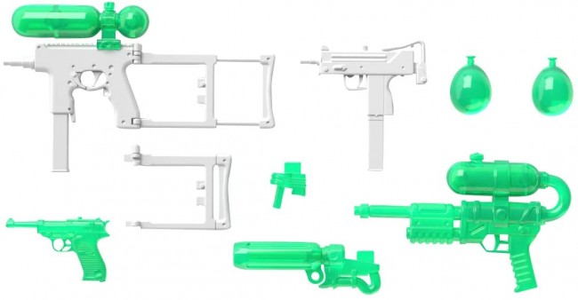 In addition to the main body, it is a product that includes a beam rifle type water gun, P38 type water gun, water balloon, etc.