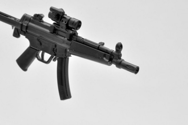 MP5F prepared for the French National Gendarmerie. This is the current model equipped with a flash hider on a large slide stock, a bolt group that supports high-power bullets.