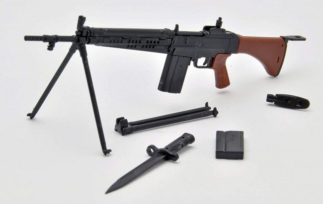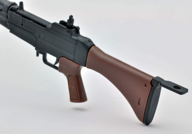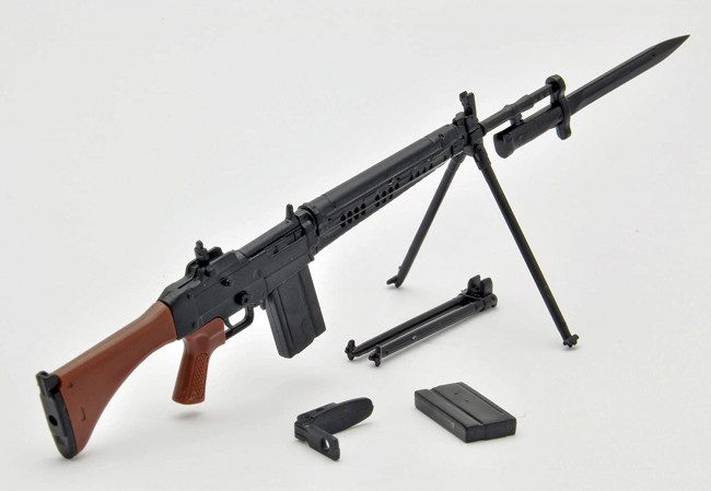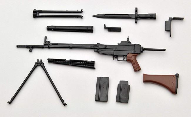 The kit includes a bipod that can be opened and closed, a floor tail plate, a detachable bayonet, and a full-size magazine. Wooden parts such as stocks and grips and other parts such as metal are reproduced by color coding of resin.