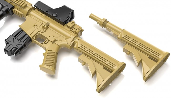 A 5.56mm caliber carbine-type assault rifle used by the entire US military as of 2020, starting with the adoption for special forces in 1994. The reliability rooted in the battle proof of the base gun M16, the total length with good maneuverability, and the rail system installed on the upper surface of the receiver and the four hand guards allow for high expandability that can be set up according to the mission and the preference of the shooter. It is a proud firearm.