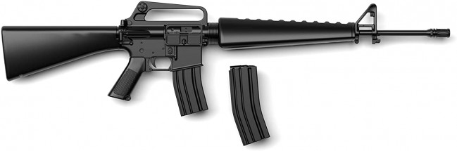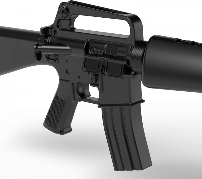 The M16, an assault rifle that uses small caliber high-speed ammunition, was adopted by the US military in the 1960s. It was nicknamed the "Black Rifle" because of its all-black appearance, which is made of iron, aluminum, and plastic without using wooden parts. This A1 type is an Army / Marine Corps adopted model that has improved the problems that occurred immediately after the M16 was put into actual battle, and features the addition of a bolt forced advance device and the equipment of a bird cage type hider.