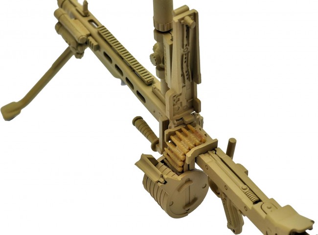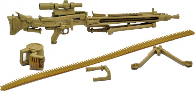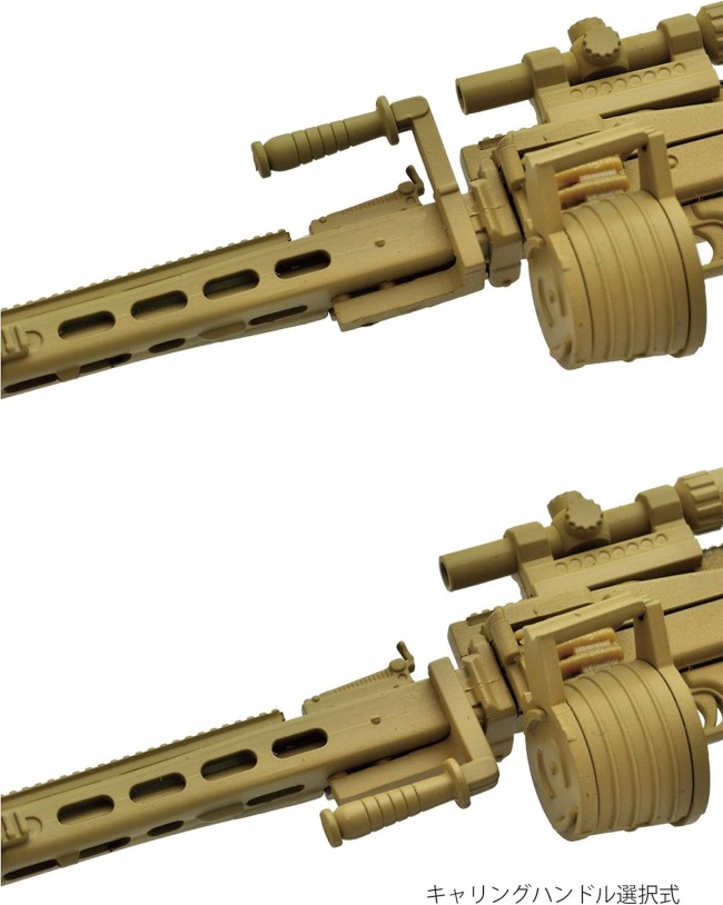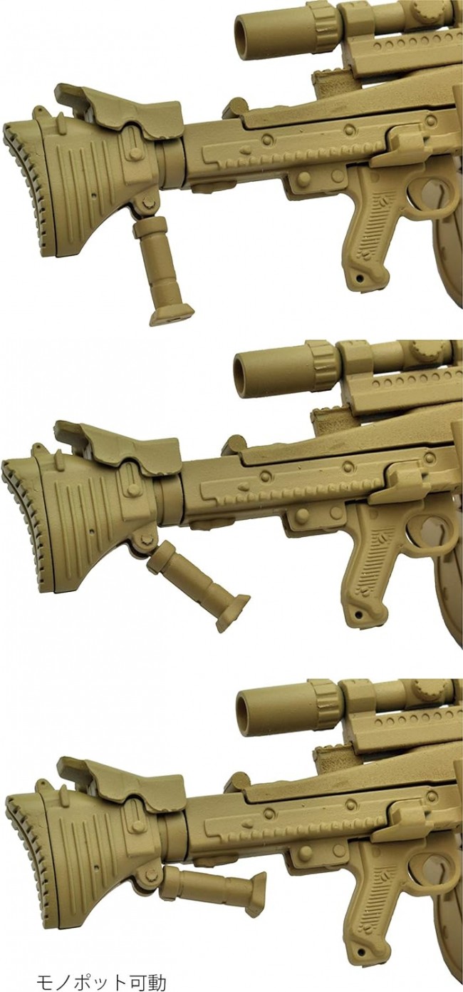 Various equipment is newly produced based on the MG3. Includes position-selectable carrying handle, monopod, as well as short scope and Vario-Ray type illuminator. Two legs are open/close selectable. Soft plastic belt links are also included. The "MG3" is a modern version of the MG42, a famous German gun from WWII. The MG3KWS is a further upgraded version of the MG3. The MG3KWS features an additional rail, a variable stock, and a monopod. Furthermore, a retractable carrying handle, which has never been added to the MG42/3 series, has been added to the MG3KWS, changing its appearance considerably. In this kit, various equipment has been newly produced based on the MG3. Included are the position-selectable carrying handle and monopod, as well as a short scope and Vario-Ray type illuminator. The two legs can be opened and closed selectively. Soft plastic belt links are also included. The engine part has been reproduced down to the internal detail. The retractable carrying handle, which was not included in the MG42/3 series, is reproduced as a selectable type. Bipod with selectable opening/closing mechanism. Monopod is movable. Rail placement in three locations, including on top of the feed cover and barrel jacket. Scope and illuminator are included. Drum magazine and belt link selectable. (Refer to the 10th image.) Back: MG3KWS type (this product) Front: MG3 type (sold separately, on sale) Please enjoy the difference in the detailed manufacturing of the products. Please enjoy the combination with movable figures equivalent to 1/12 scale. Figures are not included in the product. Specifications 1/12 scale Runner kit (uncolored) Made of resin (PS) Recommended to use adhesives for plastic models Product Size Overall length: approx. 10.5 cm All photos are prototypes. Figures are not included in the product. (From Tomytec website)