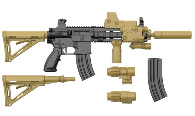 This model is a collaboration between the game "Dolls Frontline" and "Little Armory". The figure is reproduced with attachments conforming to the game illustration and in two different molding colors. A special illustration card of 416 is included. About the 416 type: The 416 Carbine is a model in which the weaknesses of the M4 Carbine have been "improved" by the prestigious German firearms manufacturer. The M4's "direct impingement" action system, in which firing gas is led into the engine to retract the bolt, had the structural weakness of being prone to malfunctions due to carbon buildup. The 416 has been replaced with a "gas piston type," in which the bolt is retracted by a piston that is triggered by the projectile gas. Various other improvements have made the M4 even more reliable and famous, while maintaining the operability and expandability of the M4. This product is a collaboration model between the game "Dolls Frontline" and "Little Armory. The attachments are based on the game's illustrations, and the figure is reproduced in two different colors. The kit includes the main body of the 416, display magazine, foregrip, sights, and other parts. The split parts are designed with the real gun in mind, so you can enjoy the atmosphere of "assembling a gun" in the process of assembling the model. The stock parts are selectable between long and short sizes. (The illustration on the package art shows the short size.) A postcard-sized illustration card is included. The back of the card has space for the finished product to be displayed and an explanation of the firearm. Special collaboration package of Dolls Frontline x Little Armory Specifications: 1/12 scale Runner kit (uncolored) Made of resin (PS) Recommended to use adhesives for plastic models Product size: Total length: approx. 7 cm All photos are prototypes. (C) SUNBORN Network Technology Co., Ltd. (C) SUNBORN Japan Co.