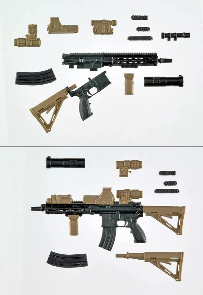 Plastic model [Scale] 1/12 [Size] Overall length: Approximately 6 cm [Material] Resin (PS) [Other] Body: Black / FDE color [LA075] 416D type custom The model 416 enhanced carbine, which is a "improvement" of the weaknesses of the M4 carbine by a German firearm maker. It is adopted by special forces all over the world and there are various derivative types, but among them, this model is customized and operated by the U.S. Army Special Forces highest rank team "DEVGRU = U.S. Navy Special Warfare Development Group" It follows the style. Styling that embodies the ultimate practicality, such as lightweight hand guards and stocks that have been reduced to waste, a 10-inch barrel that is advantageous for CQB, a suppressor with added spikes that break through the window glass, and a holographic site with a booster that supports all ranges. Is. With this kit, RAHG type hand guards, lights, and suppressors are newly manufactured. Earth tones are used for some accessories, and two molding colors are used. * Figures and guns other than the product are not included.