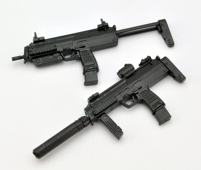 Plastic model runner kit (achromatic) [Scale] 1/12 [Size] Overall length: Approximately 5.0 cm each [Material] Black resin [Other] Display card (postcard size) included A German-made PDW (Personal Defense Weapon = Personal Defense Weapon) that uses a special 4.6 x 30 mm bullet that is an intermediate size between a pistol bullet and an assault rifle bullet. The bullet has the advantage of penetrating hard armor and staying on soft objects. It has good operability and maneuverability, and despite the name "Individual Defense Weapon", it is highly evaluated by special forces engaged in offensive missions. This product is a collaboration model of the games "Dolls Frontline" and "Little Armory". Assembling the runner kit completes the two gun bodies and accessories. Includes a special illustration card for Gr MP7. * Recommended use of adhesive for plastic models