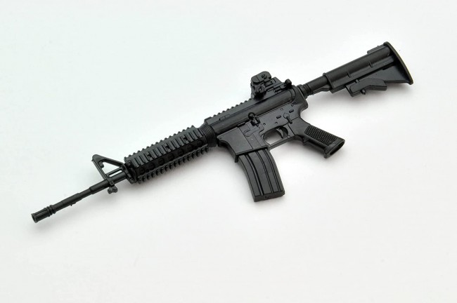 Plastic model/runner kit (Colorless) Scale] 1/12 Size] Length: approx. 6.5cm Material] Resin (PS) Number of Parts] 6 Other] Molding color: black ■Fewer parts The division in accordance with the real thing and a large number of optional parts differentiate it from the normal product which has a large number of parts. It is made as simple as possible for beginners of Litoamo. ■Elaborate modeling Even though the parts are designed for beginners, the detail is on the same level as the standard product. You can take pictures of the figure with the figure in its unassembled state, and it will still look great. Undergates are used on some parts to prevent gate marks from destroying details. ■Take advantage of common standards to heap up! The rails, stock, and other parts share some common standards with conventional products, so they can be used as a base kit for combination. The M4A1 is a small, lightweight assault rifle prepared by the U.S. military for special forces. It has a wide variety of attachments and boasts outstanding expandability. *Recommended to use adhesives for plastic models.