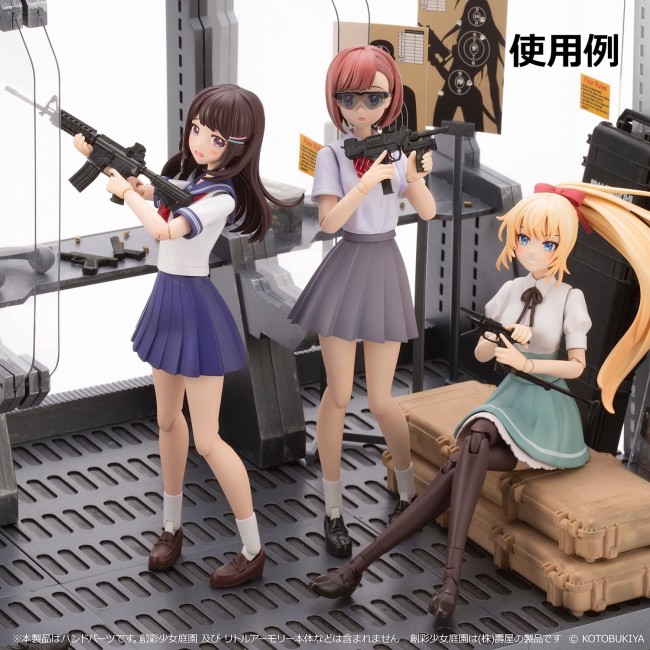 Colorless Kit [Material] Resin (PVC, PS) Hand parts for Little Armory's firearms in Kotobukiya's plastic model of a girl, "Sosai Shoujo Teien". The figure consists of a soft plastic hand, a joint and a sleeve part for Madoka Yuki [Momozakura High School Winter Uniform]. Not only shooting poses, but also ready positions, mag changes, transitions, etc... tactical actions that were difficult to achieve with existing parts are now possible! The "bare hands" are also included, which have been requested by many customers. [Set Contents] Hand parts x 8 (hand to pull the trigger, safety finger, hand to hold/support the handguard, hand to hold the fore grip) Cardigan sleeve × 6 (0 degrees, 15 degrees, 30 degrees) Fixed angle joint x 10 (0 degrees, 15 degrees, 30 degrees, 45 degrees, 60 degrees) Please note that some Little Armory firearms models are not compatible with this product due to their various shapes and sizes. Please understand this beforehand. This product is a hand part. Sosai Shoujo Teien and Little Armory are not included. Sosai Shoujo Teien is a product of Kotobukiya Co.