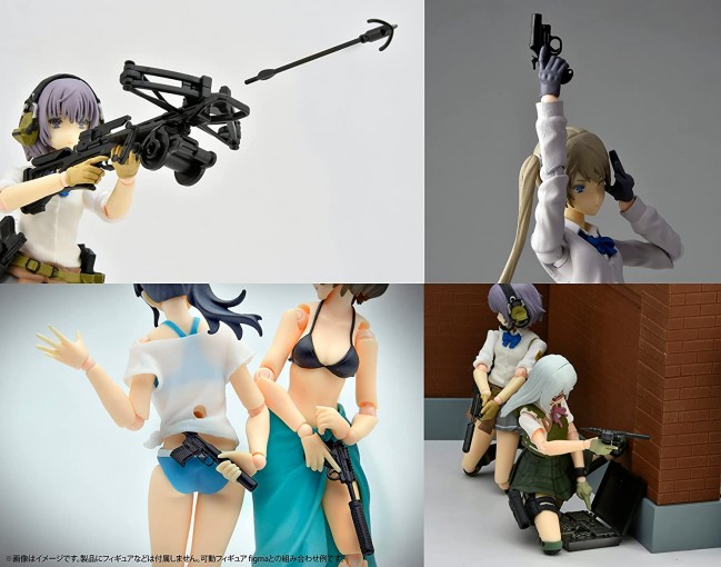 Runner kit (no color) [Scale] 1/12 [Size] Crossbow: approx. 7cm in length, Anesthesia gun small: approx. 2cm in length [Material] Resin (PS) [Other] Molding color: black Spy warrant! Nine different "quiet" work tools such as crossbow, silencer pistol, anesthesia gun, etc. are modeled in the set. Expand your play with movable figures and plastic models of beautiful girls! Combination with the briefcase submachine gun [LA045] MP5K Coffer type re-release is also recommended. [Set Contents] 1/12 scale Crossbow Anesthesia gun (large & small) Syringe gun (syringe) NRS2 type knife silenced pistol Taser Gun (Electric Gun) Flare gun (signal gun) Silenced pistols (VP9 & Ruger Mk2 type) Concealed communication devices Gun microphone for sound collection Adhesives for plastic models are recommended.
