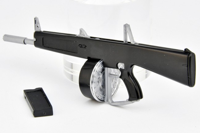 From Little Armory, which offers a lineup of elaborate firearms models in the palm-sized 1/12 scale, comes a plastic model of the gun that appears in "Resident Evil: Death Island," the new CG feature film in the "Resident Evil" series, a milestone in survival horror games. This product is a 1/12 scale model of the fully automatic AA12 shotgun that Leon S. Kennedy holds in the film. The AA12 is available in three different colors for a realistic finish, and the muzzle device of the strike head is a newly molded part. In addition, the packaging and included display cards feature CG artwork of the characters newly created for this product. The assembly instructions are also carefully designed with the image of the Resident Evil world in mind. Set contents: Gun kit, display card, assembly instructions The 1/12 scale AA-12 is made of black, silver, and clear resin and is approximately 8cm in length. Two types of magazines, drum and box, are included. Realistic finish can be achieved even inside the drum magazine. Muzzle device with strike head is made from new mold parts. Package: Newly created CG art for this product is used. Display card: Postcard-size card with color printing on both sides. The back of the card has space for displaying the finished product and a description of the firearms. Assembly instructions: The design is based on the image of the Resident Evil world. LittleArmory "Resident Evil: Death Island" Weapons 2 Specifications: 1/12 scale Runner kit (no coloring) Made of black, silver and clear colored resin (PS) Recommended to use plastic model glue Product size Length: approx. 8cm All photos are prototypes. They may differ from the product. Product specifications are subject to change without notice. Released/Distributed by TOMYTEC Co. (C) 2023 CAPCOM / DEATH ISLAND FILM PARTNERS ALL RIGHTS RESERVED. (From Tomytec website)