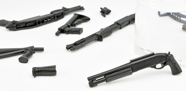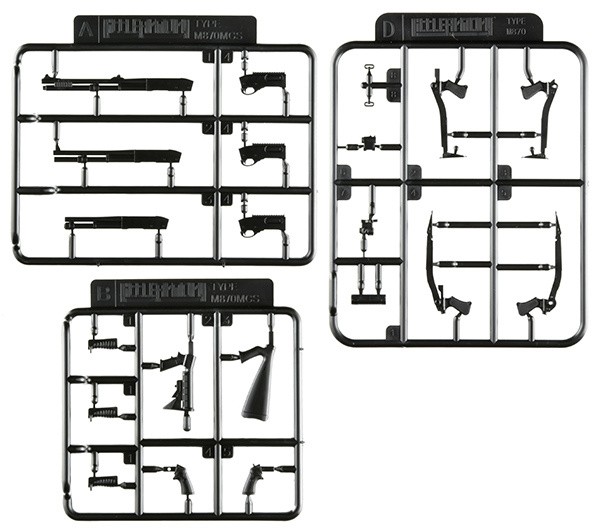 From Little Armory, which offers a lineup of elaborate firearms models in the palm-sized 1/12 scale, comes a plastic model of the gun that appears in "Resident Evil: Death Island," the new CG feature film in the "Resident Evil" series, a milestone in survival horror games. This product is a 1/12 scale model of the breaching shotgun M870 that Jill Valentine holds in her hand in the film. The forend is movable to add shotgun-like playfulness. Two different versions of the 870 series are also included (the stockless model is the only one used in the film). In addition, the package and included display card feature CG art of the characters newly created for this product. The assembly instructions are also carefully designed with the image of the Resident Evil world in mind. Set contents: Gun kit, display card, assembly instructions The 1/12 scale M870 (without stock) is made of black resin and measures approximately 4.5cm in length. In addition to the specifications used in the film, an 18-inch barrel model, a 14-inch barrel model, and various other stocks are included. Each stock is interchangeable, so you can reconfigure it according to your preference. The forend is movable. Package: The package contains CG artwork of the characters newly created for this product. Display card: Postcard-size card with color printing on both sides. The back of the card has space for displaying the finished product and a description of the firearms. Assembly instructions: The design is based on the image of the Resident Evil world. LittleArmory "Resident Evil: Death Island" Weapons 3 Specifications: 1/12 scale Runner kit (no coloring) Made of black resin (PS) Recommended to use adhesives for plastic models. Product size Length: approx. 4.5cm All photos are prototypes. They may differ from the product. Product specifications are subject to change without notice. Released/Distributed by TOMYTEC Co. (C) 2023 CAPCOM / DEATH ISLAND FILM PARTNERS ALL RIGHTS RESERVED. (From Tomytec website)