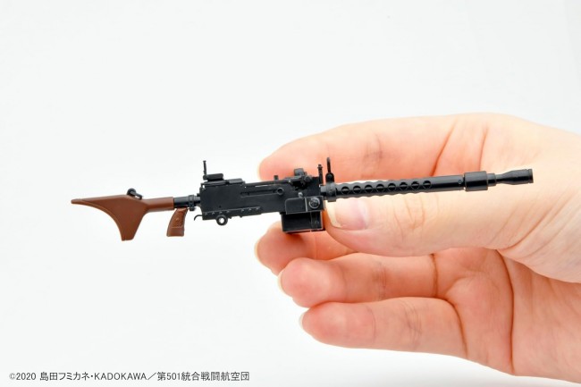 From Little Armory, which offers a lineup of elaborate miniature firearms, a gun from the TV anime "501st JOINT COMBAT AIR WING STRIKE WITCHES ROAD to BERLIN" is now available as a plastic model! This product is an assembled 1/12 scale model of the Rebellion machine gun "M1919A6" used by Francesca Lucchini. This model is designed to reproduce the specifications of the gun in the movie, including the ammunition box attached to the receiver, the barrel and heat shield, and the stock molded in different colors. The package and illustration card feature an original illustration by Michio Satou. On the back of the illustration card is a commentary on the firearms, written by Takaaki Suzuki, a worldview setting and military archaeologist. The illustration card can be used as a display for models by combining it with a clear card depicting a magic circle. Each of the illustration cards is carefully designed to reflect the world view of "Strike Witches". Little Armory [LASW05] Strike Witches ROAD to BERLIN M1919A6 Specifications: 1/12 scale Runner kit (no coloring) Made of resin (PS) *Recommended to use adhesives for plastic models. Product size: Total length approx. 12cm (C) 2020 Fumikane Shimada / KADOKAWA / 501st Combined Air Wing [Package Illustration] Original Drawing Michio Sato Finishing: Yuko Sato Finish: Tomoaki Makidera [Firearms Commentary] Takaaki Suzuki Interview supported by: Weapons School, Japan Ground Self-Defense Force *All photos are prototypes. They may differ from the product. *Product specifications are subject to change without notice. Released/Distributed by TOMYTEC Co. (From the TOMYTEC website)