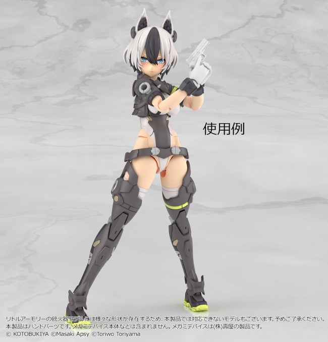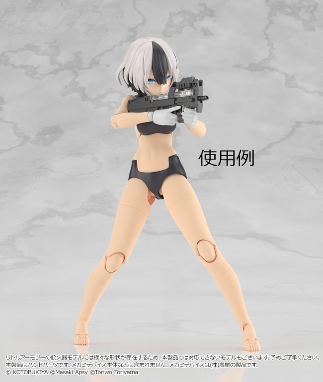 A new set of “gun-holding hands” has been released for Kotobukiya’s “Megami Devices” plastic model series, designed to equip Little Armory’s Real Guns! This set includes six types of soft resin hand parts, such as a single-piece left-and-right hand that recreates the difficult-to-pose “two-handed handgun grip,” and a hand designed to grip a tilted grip. The design is optimized for handguns, old-style rifles, and P90-type weapons?models that were difficult to accommodate in the previous release. The set includes two handguns and movable wrist joints with a 2mm shaft diameter compatible with Megami Device bodies. The parts are molded in white. This item is highly recommended for enthusiasts who want to enjoy realistic gun action with their Megami Device figures. LittleArmory Megami Device Gun Gripper 2 (White) Specifications: ・Hand Parts ×6 ・Handguns ×2, Wrist Joints ×4 ・PVC/PS/POM Runner Kit (Unpainted) *All photos show prototypes. The actual product may differ. *This is a runner kit that requires no assembly. Tools are required to separate the parts from the runners. *Due to the wide variety of shapes in Little Armory’s firearm models, please note that this product may not be compatible with some models. *This product consists of hand parts only. It does not include the Megami Device figure or Little Armory firearms. Megami Device is a product of Kotobukiya Co., Ltd. Distributor: Tomytec Co., Ltd. (C) KOTOBUKIYA (C)Masaki Apsy (C)Toriwo Toriyama (From the Tomytec website)