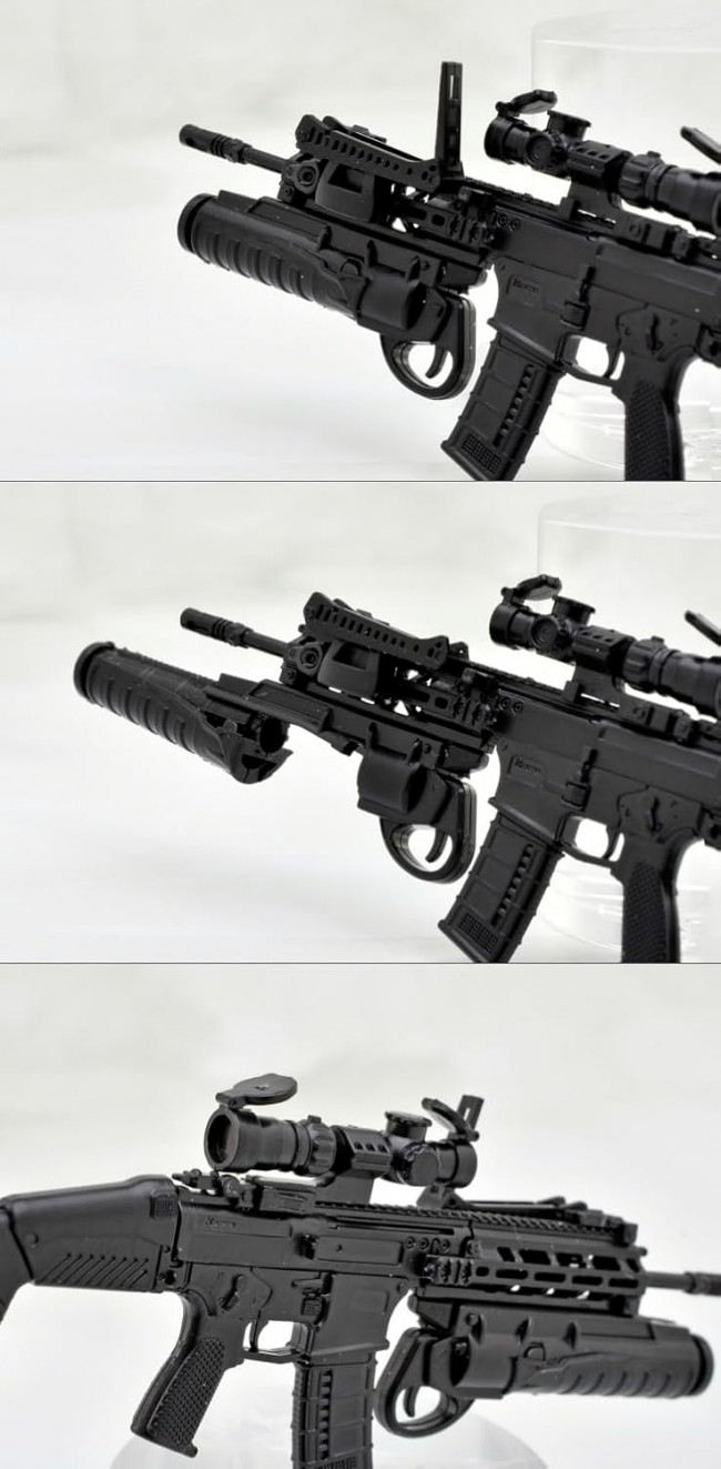 The modeling is precise, based on interviews conducted at the Japan Ground Self-Defense Force Weapons School, and is of a quality that can only be achieved with Japanese manufacturing. The launcher can be attached to or detached from the gun body and can be left open. The launcher sights are selectable, and a short scope is included as a sight for the rifle. Experience the high expandability of the Type 20 rifle in the kit. The kit is designed with realism in mind, allowing you to enjoy the atmosphere of “assembling a gun” in the process of assembling the model. The add-on grenade launcher can be attached to or detached from the gun body, and its open or closed state is selectable. The sight for the launcher is selectable between open and closed. A short scope is also included as a sight for the rifle. The 1/64 scale TORRUMORI can be compared with other models. Please combine with 1/12th scale movable figure to enjoy. Figures are not included. The box art was newly drawn by Hankonohito! About the Type 20 Rifle & Enemy Ammunition Launcher The Self-Defense Forces' new rifle, the Type 20 5.56mm Rifle, developed by HOWA Kogyo, is a next-generation rifle with excellent expandability. It is designed to accommodate a variety of attachments for different missions, one of which is an add-on grenade launcher. This is an integrated grenade launcher and rifle that demonstrates high readiness in a combat environment where instantaneous switching is required. It is also compatible with smoke bombs and flares, and functions as a multi-purpose firearm that plays a key role in squad actions. LittleArmory Type 20 Rifle & Enemy Ammo Launcher Specifications: 1/12 scale Runner kit (uncolored) Made of resin (PS) *Recommended to use plastic model glue Product size Length: approx. 7cm Interviewed by: Japan Ground Self-Defense Force Weapons School *All photos are prototypes. All photos are prototypes and may differ from the product. *Product specifications are subject to change without notice. Released/Distributed by TOMYTEC Co. (From the TOMYTEC website)