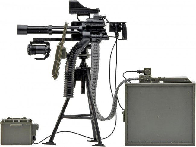 This is a turret version of the M134 for base defense. In addition to the minigun itself, the 1/12 scale model includes a complete system including naval mount, bulletproof shield with windshield, large light and dot sights, high-capacity ammo box, and battery. The feed shooter and cord are made of soft material. This “defensive configurator” can be used in a wide range of situations, from “last-resort” situations with figures to extended uses for sci-fi mechs that take advantage of the 3mm axis. A hose for ejecting a large amount of empty shells and links is also included. The complete system, including a high-capacity ammo box and battery, is included in the 1/12 scale model. The feed shooter and cord are made of soft material. Large dot sight can be combined with Little Armory products (sold separately). Please combine with 1/12th scale or equivalent movable figures. Figures are not included. About M134 Type Defensive Configuration The M134 is an ultra-high-powered weapon that fires 7.62mm rounds at 6,000 rounds per minute. The six barrels are electrically rotated, and the sight of bullets and casings spraying out with an unbroken roar is breathtaking. It is commonly known as a “minigun” because it was developed as a smaller version of the 20mm Vulcan cannon mounted on fighter aircraft. LittleArmory M134 Type Defensive Configuration Specifications: 1/12 scale Runner kit (uncolored) Resin (PS) *Recommended to use plastic model glue Product Size Minigun body Length: approx. 10cm Contents ・Mini gun body ・Large dot sight ・Large weapon light ・Naval mount (tripod) ・4000rd ammo box ・Battery box ・Feed shooter (soft resin) ・Cord Planning cooperation: MULE Corporation *All photos are prototypes. They may differ from the product. *Product specifications are subject to change without notice. Released/Distributed by TOMYTEC Co. (From Tomytec website)
