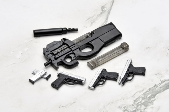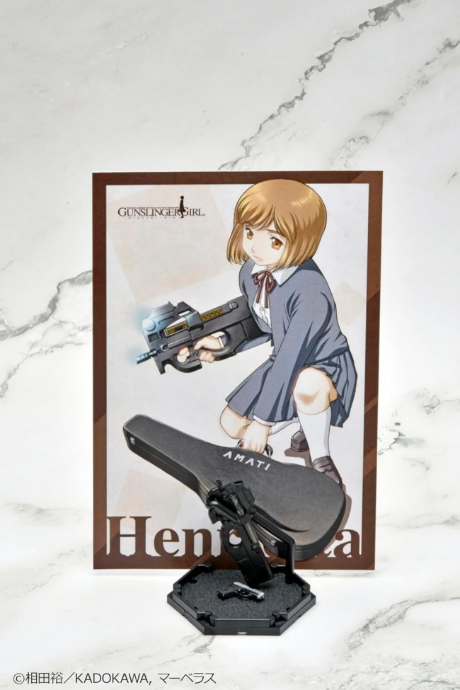A collaboration model between the acclaimed gun action masterpiece ‘GUNSLINGER GIRL’?depicting the bond between a cybernetic girl and her handler?and the firearm model series ‘Little Armory’. This work is a precision miniature model of the firearms used by “Henrietta”. The main weapon is the P90, a bullpup-style PDW (Personal Defense Weapon) that boasts excellent penetration despite its small size and light weight. The sub-weapon is the P239, a compact pistol designed for practicality, offering superior portability and operability. A display stand is included, allowing you to display the completed gun alongside the character card. This set lets you relive the quiet world where girls and guns intersect right at your fingertips. ・ Developed in Belgium during the late Cold War under the concept of a “compact, lightweight, high-power, low-recoil personal defense weapon,” this is ‘Project 90’. This product allows selection between a suppressor-equipped or suppressor-less configuration. The removable translucent resin magazine allows for depicting loaded status by coloring the internal ammunition shape. ・ A compact pistol developed as a successor to the German masterpiece automatic pistol, the “P226”. This product includes three types: hammer cocked, hammer down, and slide rearward. The slide section and accessory magazine are pre-painted silver. ・ Includes a postcard-sized display card. The back of the card allows for displaying the completed model. ・Includes the “CharArm Stand” accessory for displaying the weapon alongside the card. Its versatile design allows use with other LittleArmory products sold separately. ※Some firearms may not be compatible. LittleArmory Gunslinger Girl Henrietta P90・P239 Type Specifications: 1/12 Scale Runner Kit (Partially Pre-painted)・Resin (PS) ※Plastic model adhesive recommended Product Size: Total Length: Approx. 4cm (P90) ※All photos show prototype samples. Distributor/Seller: TOMYTEC Co., Ltd. (C)Yutaka Aida/KADOKAWA, Marvelous (C)TOMYTEC (From the TOMYTEC website)
