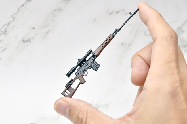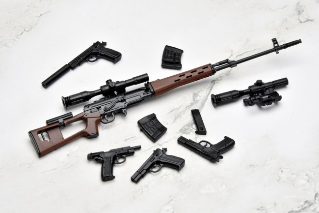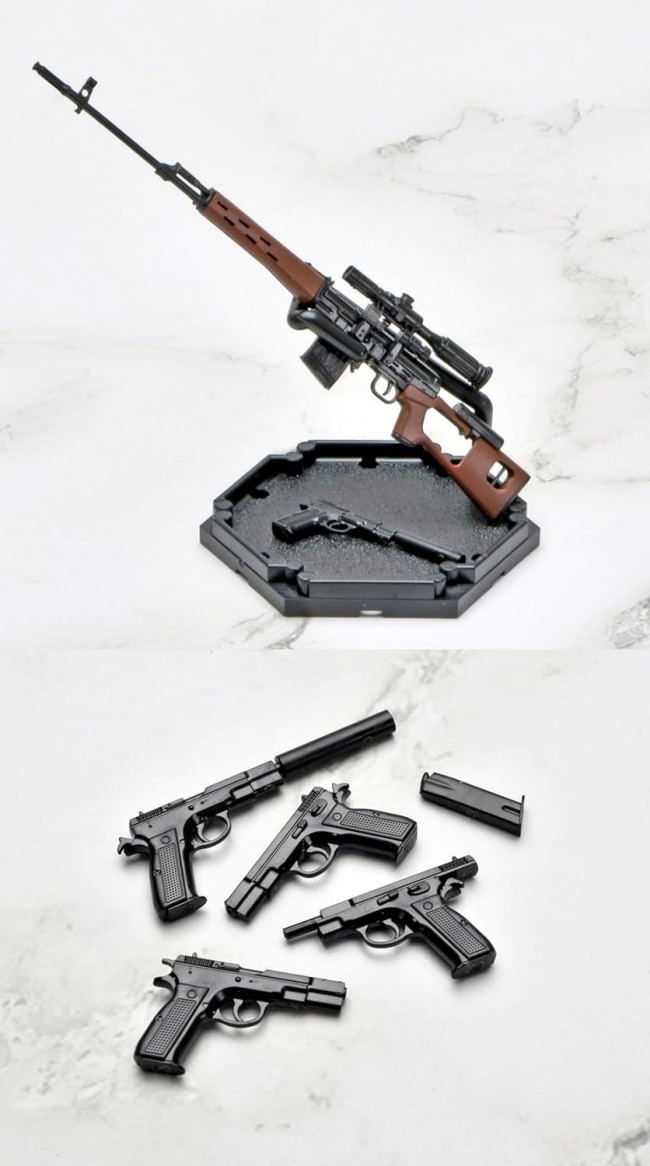 A collaboration model between the acclaimed gun action series *GUNSLINGER GIRL*, which depicts the bond between a cybernetic girl and her handler, and the firearm model series *Little Armory*. This is a highly detailed miniature model of the firearm used by “Riko.” Her main weapon is the SVD, a Soviet-made semi-automatic sniper rifle renowned for its overwhelming durability and firepower. Her secondary weapon is the Cz75, a legendary firearm meticulously crafted behind the Iron Curtain. The set also includes a display stand that allows you to display the completed gun alongside a character card. This set lets you relive the quiet world where a girl and her guns intersect right in the palm of your hand. ・ The SVD (Dragunov Sniper Rifle) is a semi-automatic sniper rifle adopted as the standard military issue by the Soviet Army in 1963. While its accuracy does not match that of bolt-action sniper rifles, its semi-automatic mechanism allows for rapid successive shots at targets, and its construction is extremely robust. It was deployed to a certain percentage of infantry units in the former Soviet Army and played a crucial role in covering targets beyond the range of the standard-issue AK rifle. ・ The secondary weapon is a new mold reproduction of the legendary Cz75, a masterpiece meticulously crafted behind the Iron Curtain. ・ A postcard-sized display card is included. The back of the card allows you to display the completed model. ・ Includes the “CharArm Stand,” a part designed to display the weapon alongside the display card. Its versatile design allows it to be used with other LittleArmory products sold separately. *Note: Some guns may not be compatible. LittleArmory Gunslinger Girl Riko SVD/Cz75 Type Specifications: 1/12 scale Sprue kit (partially pre-painted)・Resin (PS) *We recommend using plastic model glue. Product Size: Total Length: Approx. 10 cm (SVD) *All photos show prototype models. Publisher/Distributor: TOMYTEC Co., Ltd. (C) Yutaka Aida/KADOKAWA, Marvelous (C) TOMYTEC (From the TOMYTEC website)