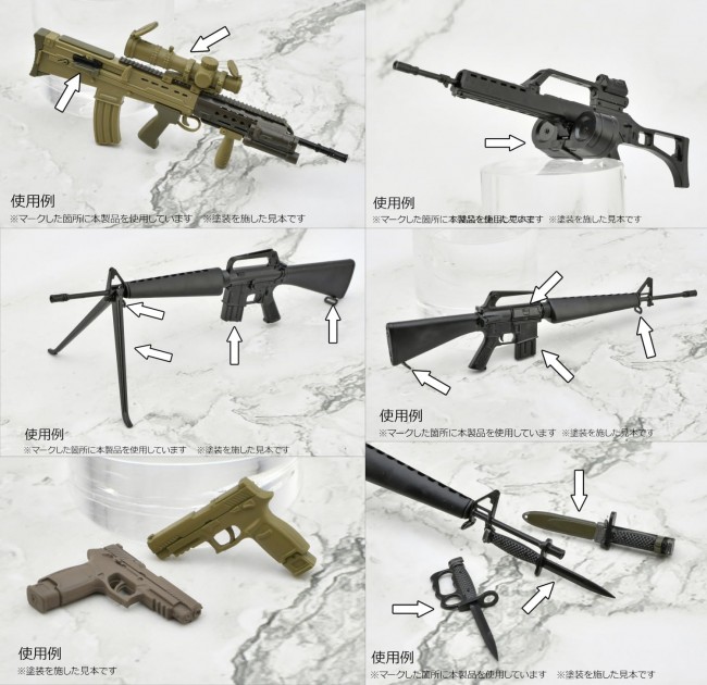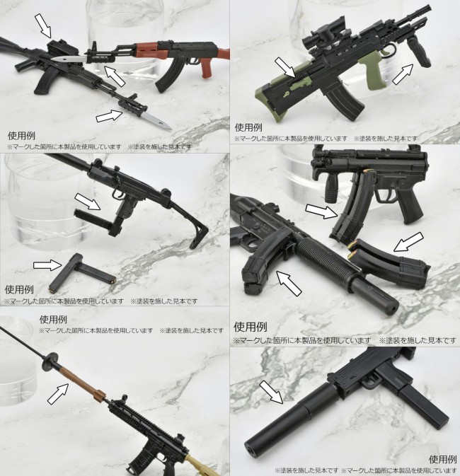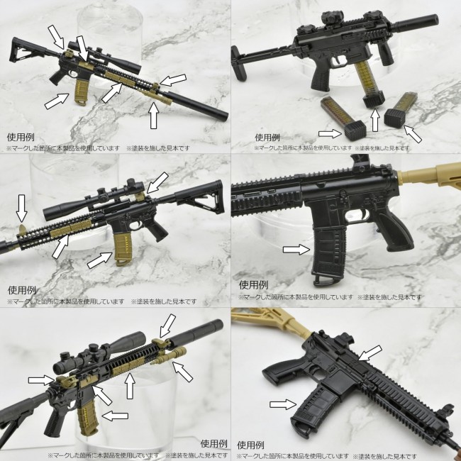 This is a 1/12 scale miniature accessory set compatible with various firearms featured in the LittleArmory lineup. Recommended for those aiming for a look that stands out from the crowd! A complete 38-piece customization parts set. Primarily for M4/M16, but also allows dressing up MP5, UZI, and others. Includes parts compatible with attachment hole specification handguards! ・Box art features an original illustration by Hankono Hito! LittleArmory Guns Accessories B2 FDE Color ver. Specifications: 1/12 scale Runner assembly kit PS resin Product size: Each part 0.5?6cm total length ※All photos show prototypes. Actual product may differ. ※Product specifications are subject to change without notice. Distributor/Seller: Tomytec Co., Ltd. (From the Tomytec website)