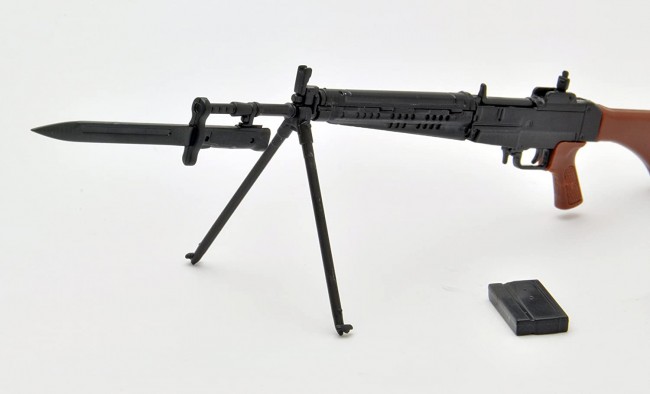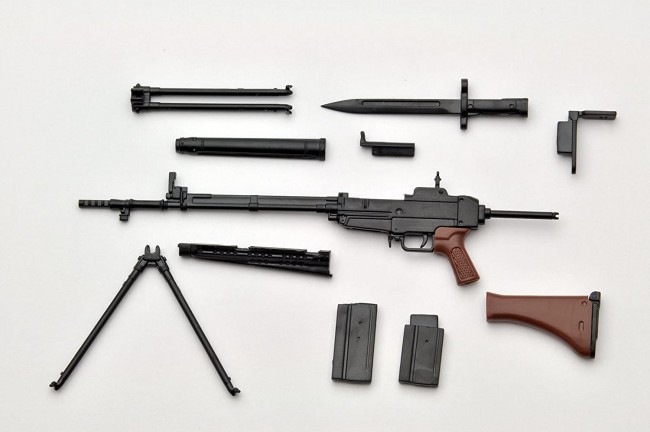 This kit comes with a bipod that can be opened and closed, a floor tail plate, a detachable bayonet, and a full-size magazine. Wooden parts such as the stock and grip and other parts such as metal are reproduced by color coding of resin.