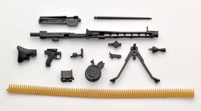 This kit reproduces the MG3's unique muzzle booster, simple anti-aircraft sight case, and magazine. The two leg parts are openable and closable. A belt link made of soft resin, which was popular with the M240G, is also included.