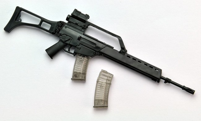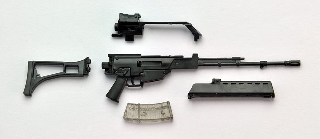 This kit reproduces the base model "G36" equipped with a built-in two-stage sighting device. The magazine is made of translucent resin, and you can enjoy a more realistic appearance by inserting and coloring the inside.