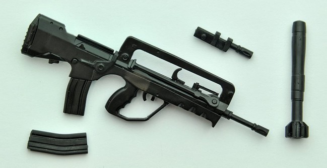 The kit this time is the G2 type, which is an improved model of the F1 type. It is equipped with a large grip guard that makes it easy to access the trigger even when using gloves, and features NATO standard 5.56 mm bullets and magazines, which have been used by French Navy units since 1995.