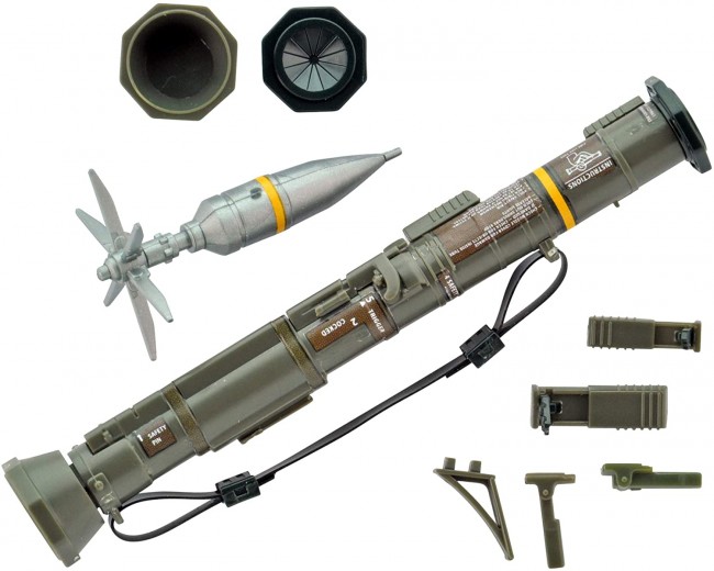 With the kit, you can select the state when the aim and shoulder rest are deployed at the time of launch and the state when they are stored and carried. It also comes with a flying 84mm shell and a rubber sling.