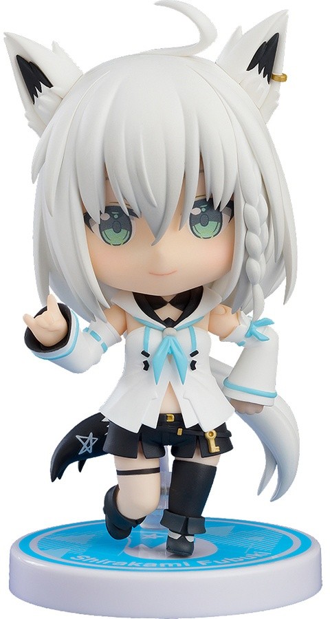 Nendoroid Series. The root of the root of the root! This is Fubuki Shirakami! From the popular virtual YouTuber group "Hololive" comes a Nendoroid of the white-haired, chemomimi otaku fox, Fubuki Shirakami! She comes with three expressions: a standard expression, a smiling expression and a "Killer" expression, which shows her putting all her energy into her favorite things. She also comes with a variety of optional parts including a "fubuchun", "oru-yanke", "corn" and "tea". Her ponytail and tail are movable, and she also comes with a pair of bendable ears, allowing you to display her in all her adorable poses! Please welcome her into your hands! Painted plastic figure, fully articulated. Non-scale Exclusive pedestal included Height: approx. 100mm Sculptor Toytech D.T.C Cooperation Nendoron Product will not stand on its own. Please use the included pedestal. Pictures shown may differ slightly from the actual product. The painting process of the product is done by hand, so there may be slight differences in each product. Please understand this in advance. (C) 2016 COVER Corp. (From Good Smile Company website)